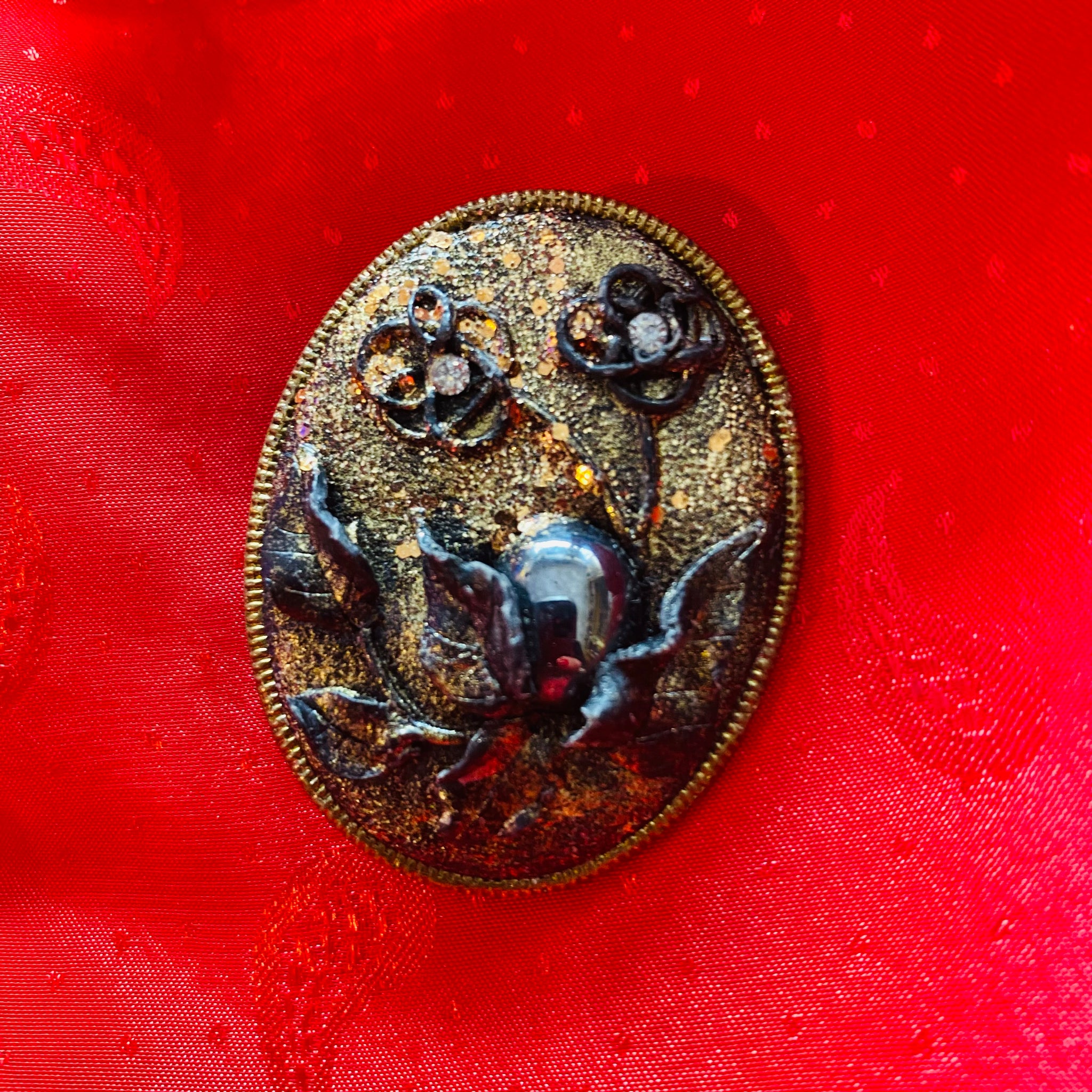 Çiçek işlemeli parlak vintage broş.