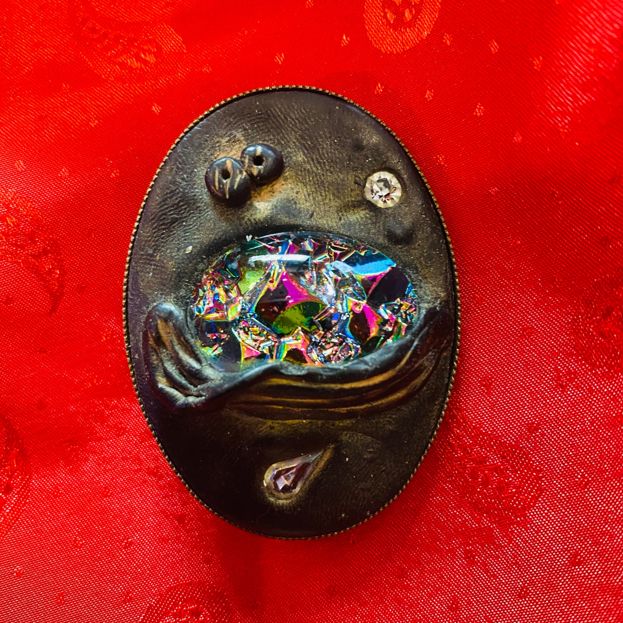 Renkli taşlı vintage broş.