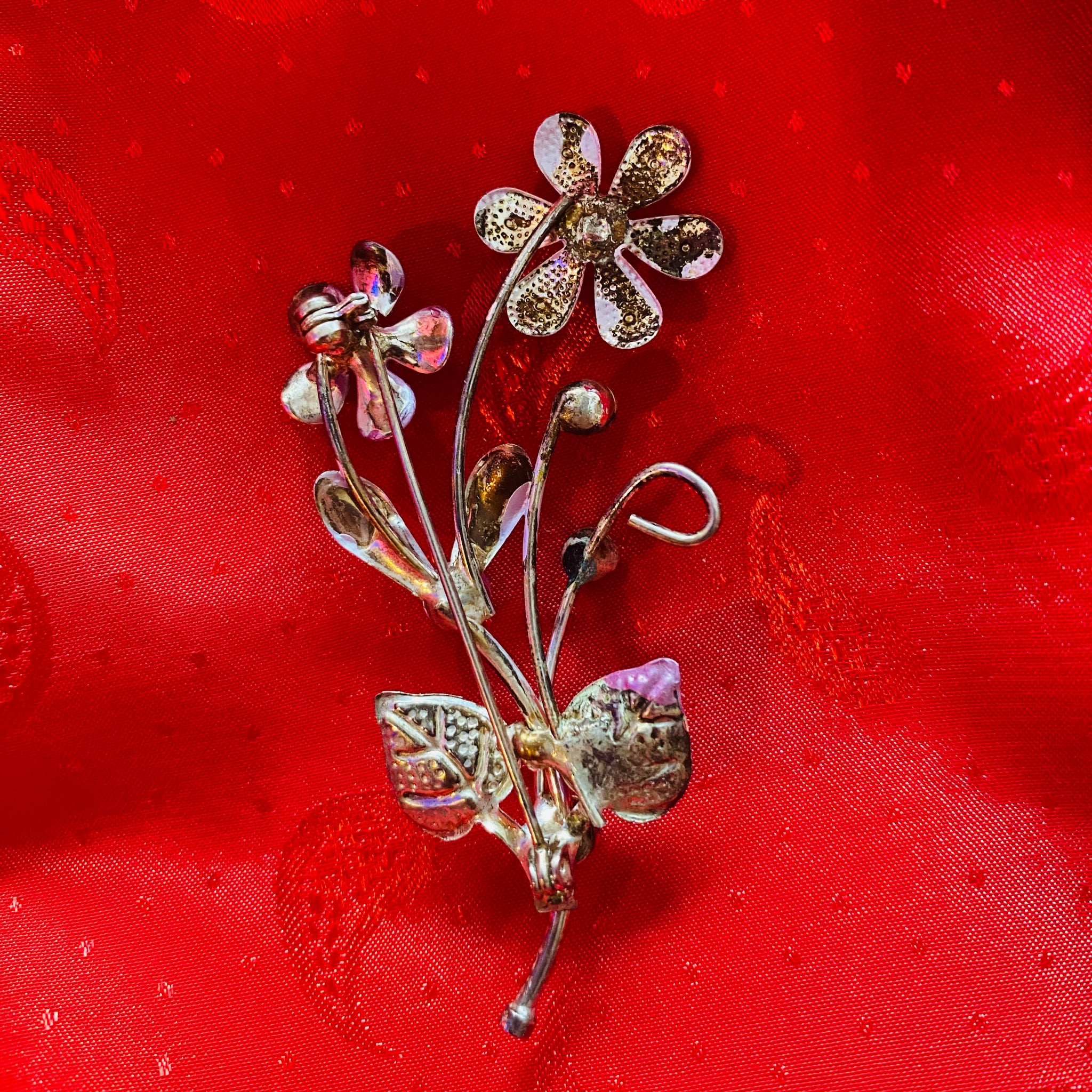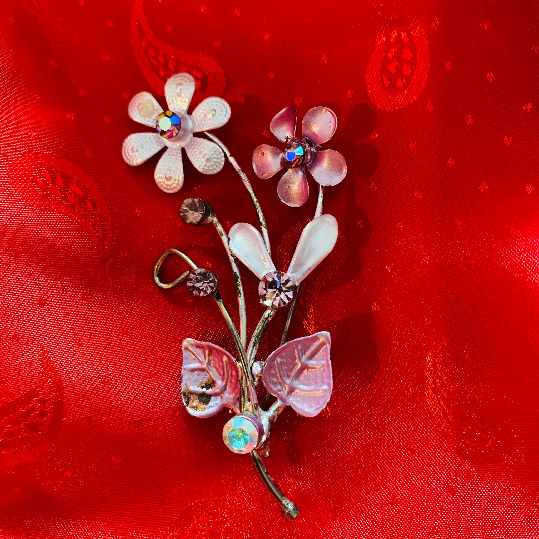 Pembe çiçek vintage broş.